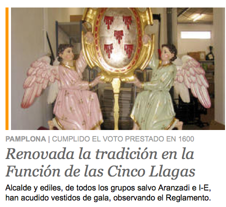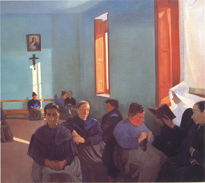 El 24 de marzo de 2016, un Jueves Santo como este, algunos concejelas «progresistas» del Ayuntamineto de Pamplona –algunos de los por entonces elegido para cambiar las cosas, para «el cambio»– marcharon «de etiqueta» –en el traje de faena de Fantômas– y en procesión nacionalcatólica al Voto de las Cinco Llagas, «como manda la Tradición». La Tradición es una señora muy tradicionalista que manda con mucha autoridad y que siempre se considera por encima de los mandatos de la soberanía popular. Desde aquel Jueves Santo me acuerdo del pintor de origen pamplonés Lorenzo Aguirre (Pamplona, 1884), sentenciado a muerte y vilmente ejecutado en 1942 por el franquismo –a garrote vil, coma mandaba otra de tantas españolísimas tradiciones, por el delito de sobra probado de su inquebrantable fidelidad a la Constitución democrática de la II República–, a su vuelta de la Francia ocupada por los nazis, en la confianza –propia de un incauto, de alguien muy desinformado o muy desesperado– de que no sería pasado por las armas. En efecto, no fue pasado por las armas. Aguirre fue pasado por una españolísima máquina de matar, el garrote vil, que alcanzaba cotas de crueldad muy susperiores a las de cualquier arma convencional. Cada Jueves Santo me acuerdo de la pintura que Lorenzo Aguirre firmó en 1922 con el título Luz divina. A primera vista la luz de esa pintura es muy mediterránea, pero si se mira más despacio se ve que no, que es la luz de ciudades norteñas tan tradicionalmente católicas como Pamplona. La pintura es propiedad del Prado, pero se puede ver en el Museo de La Rioja.